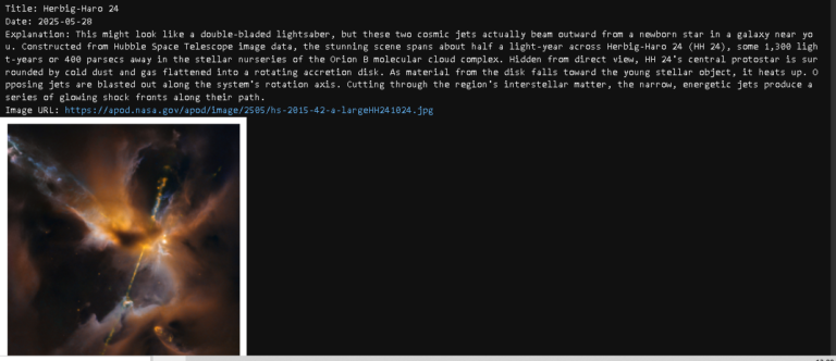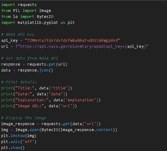 2. בקש מהבינה מלאכותי לפתח קוד שיראה לך תמונות של החלל מבוססות האתר של NASA API
