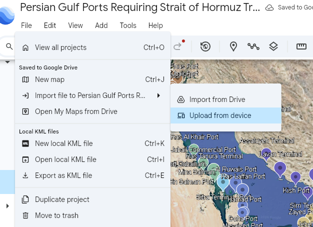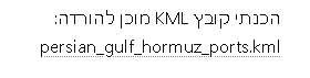 - צור קובץ KML עם כל הנמלים של במפרץ הפרסי שעוברים דרך מיצרי ההורמוז לטעינת נפט לספינות – ( שמור אותו קובץ לספריית DOWNLOAD) הצג על מפה את הנמלים