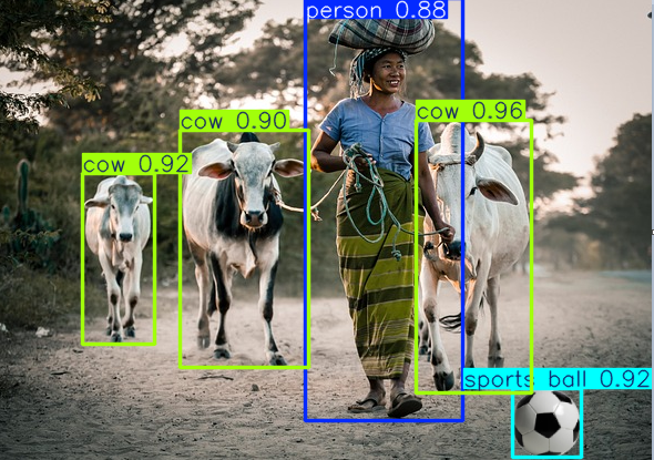 from ultralytics import YOLO print("Program start...") # Load model model = YOLO("yolov8s.pt") # Run detection results = model(r"C:\AI\PICS\pic1.png") # Show detections results[0].show() |